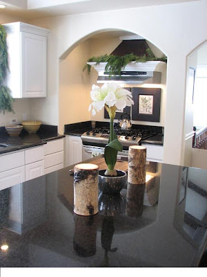 We battled long & hard over the countertops & he won - we both wanted black, but I wanted a honed finish to go with the old cottage he lives in, whereas he wanted the polished because he thinks patina equals old & crappy. ah vell , it's still gorgeous :)
