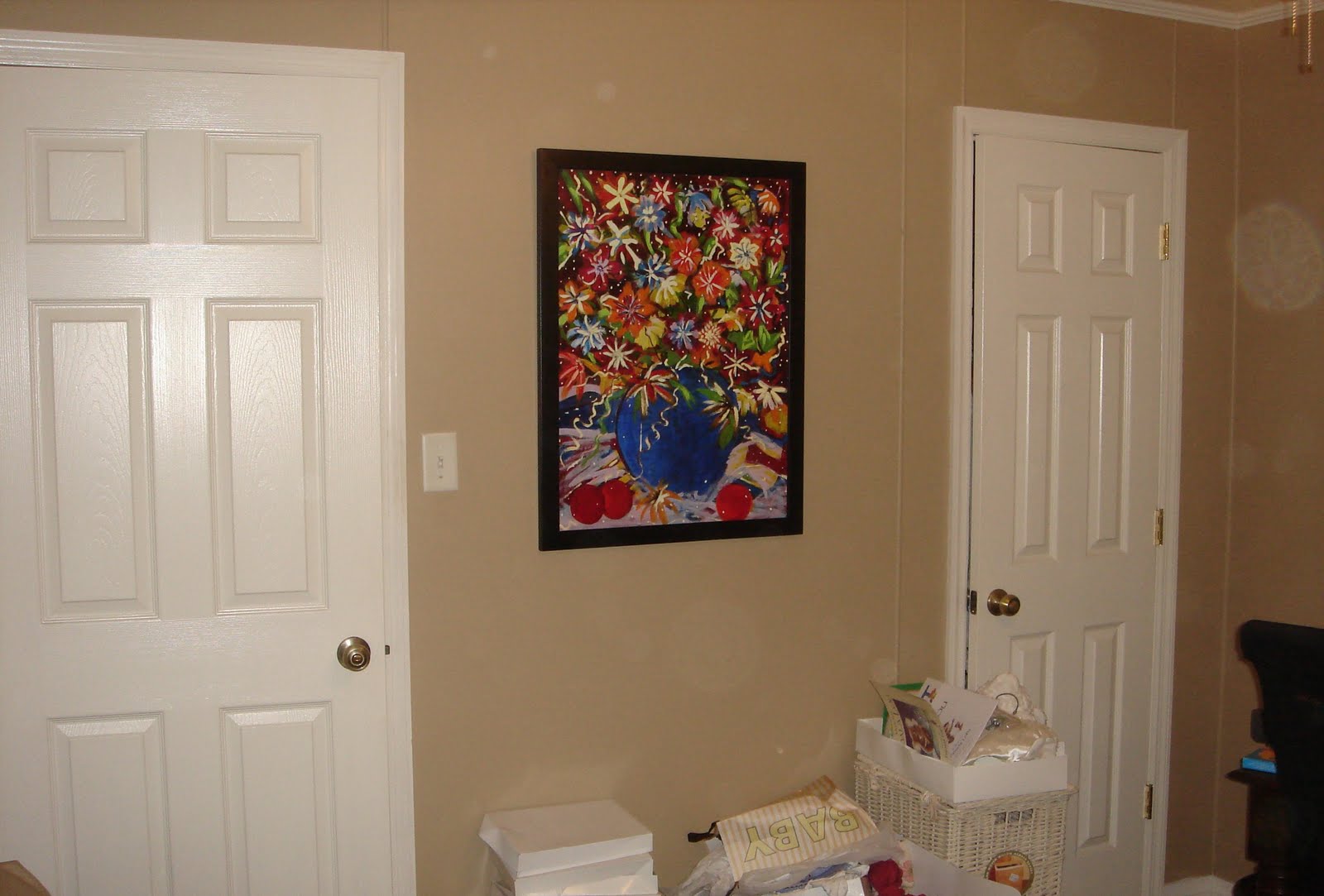 Oh, I love everything about it! We just found out we are having a boy so nurseries are on my mind! Love the brown with blue trim....and love the artwork and the mirror....was it in the owner's collection or would you be willing to share the source?
