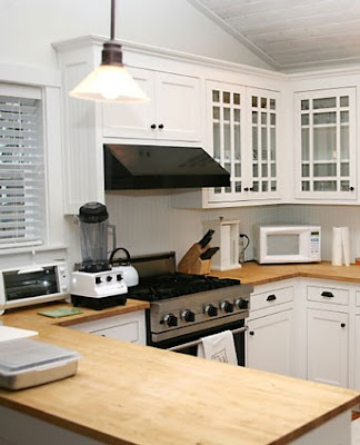When perusing through images of kitchens whose range hoods appeal to me, I noticed that many of them had range hoods that stood alone vs. ones that were flanked on both sides by cabinetry, which is what we'll need for the kitchen we're redesigning. While I think stand alone range hoods are A-mazing (on my personal wishlist one day) they don't always fit into existing kitchens because of space & storage needs, so I've been on the hunt for a pretty yet practical solution for our range hood that will need to be flanked by cabinetry.