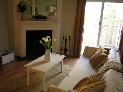 2) Shoot during the day when the lighting is good. (Unless you're specifically after nighttime shots like a Christmas tree at night or candles or something special like a city view.) Here is our living room when we first moved in. (With all of my lovely decor from my old apartment... eeeeeek) I didn't use flash on it even though it was taken at night: (which is good)