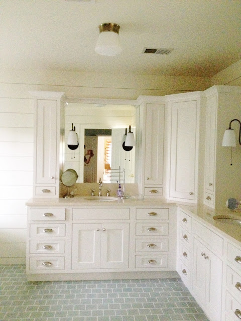 We decided upon a palette of pale blues & creams and worked with our friend Mike Carr of CarrMichael Construction to design the new cabinetry & layout. We settled on timeless fixtures and I was thrilled when our clients said "yes" to painted shiplap walls.