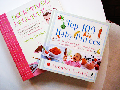 My two go-to books for inspiration when making baby food are Top 100 Baby Purees by Annabel Karmel and Jessica Seinfeld's Decpetively Delicious, which I'm sure you've heard of: