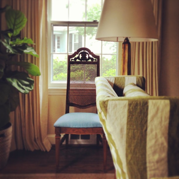 Last week we installed a couple of rooms our clients' home so I thought I'd share a few afters (iphone/ instagram pics) I snapped. I met our clients years ago when I first started out decorating. They'd given me a call to do a consultation in their home way back when. We got along really well and I was so happy to get a call a few years later after they purchased their new home. My clients are a young (incredibly sweet & happy) family who love a traditional-feeling home that feels fresh and a tad fun. We usually throw in a little preppy streak too for good measure. Here is their living room when we first started out: