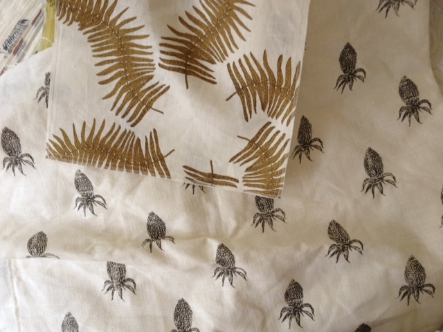 so on the fence about how much I want going on in there!! I have a serious love for textiles and patterns and a little bit of Boho on one hand, but on the other, I love a quiet mix of solid textures. I've decided that I'm doing Fern Star in Sepia on the bed mixed with some Squid flower pillows ...