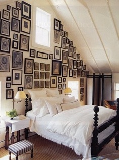 My bed is on a high wall (approx 16 feet high) and it's the perfect wall to really load up with art. I have so many pieces I've collected over the years and the wall would hold so much, but it would completely de-Zen my room :/